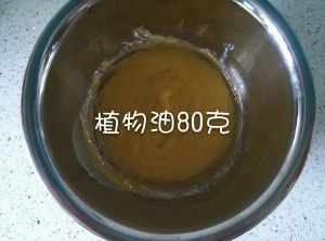 加入植物油,搅拌均匀。一定要快速搅拌,否则会凝固的哦。