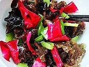 玫瑰花瓣用淡盐水泡10分钟并洗净、黑木耳泡发洗净撕成小瓣,芹菜洗净切段。