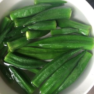水烧开之后放入秋葵,30秒左右即可,时间太长影响色泽!捞出秋葵马上过凉水