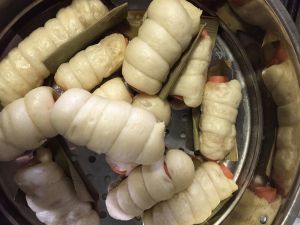 我还说道做了几个包子,包上准备好的冬瓜馅和包菜肉末馅,蒸好,美味!