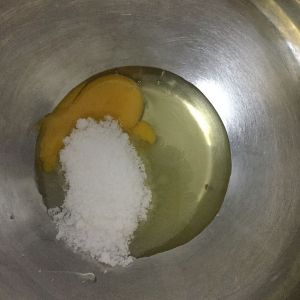 鸡蛋加糖,搅打成蛋液