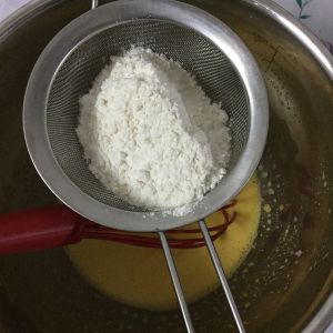 再次筛入粉类,并用刮刀翻拌均匀
