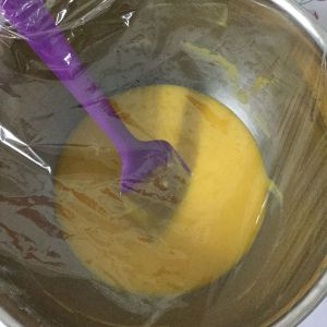 蛋液中加入柠檬、蛋黄沫,混合均匀