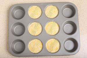 在月饼的表面刷上蛋黄液,然后用叉子弄出横线的形状