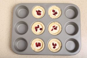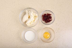 奶油奶酪的馅料放入。蔓越莓干放入馅料中