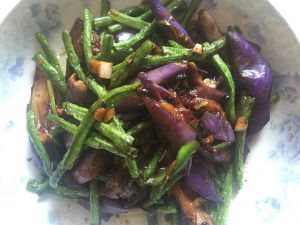 准备一碗调料两勺水少许料酒和豆豉酱、糖、生抽,锅内放一点点油就可以了放葱姜蒜炒香然后倒入调好的酱汁最后加入豆角和茄子翻炒均匀起锅前放鸡精就OK了(我没放盐味道刚刚好、豆豉酱油都是咸的)