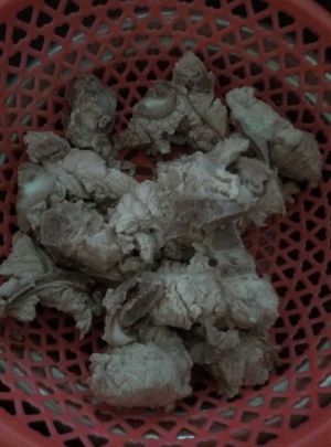 这是已经清洗后的排骨。清洗时可以稍微一下排骨宰碎时产生的一些骨头渣,听奶奶说,清除骨头渣免得得胆结石,也不知道是不是真的,不过我一直这样做。排骨可以多清洗个两三次,差不多把血水清洗干净就可以了。血水清洗干净以后,进行焯水时出来的泡沫不会很黑很恶心。