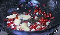 炒锅倒入稍多一点的油,大火烧至八成热,下入步骤2中的所有材料,翻炒出香;
