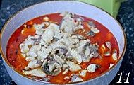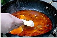 锅内的汤汁重新开大火烧开,水沸腾时下入鱼片汆熟;