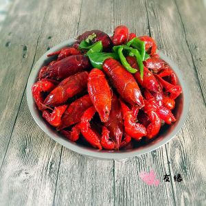 倒入啤酒,没过龙虾,大火烧开,加适量的盐转中小火煮至龙虾熟透,汁水剩余1/3左右,加入葱段,青椒(大概撕一下),翻炒2-3分钟即可