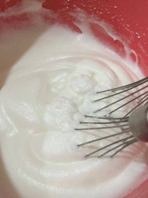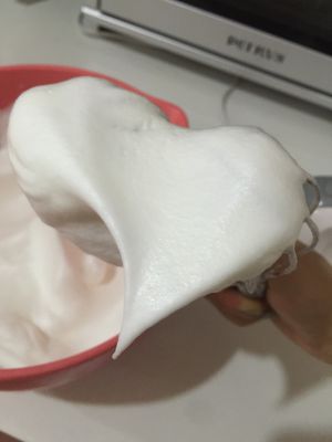 蛋白打发起泡后加入盐 柠檬汁 20g糖 然后继续打发