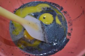 牛奶➕黑芝麻酱混合均匀后➕蛋黄搅拌均匀