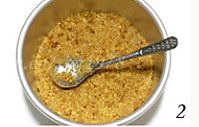 将30克无盐黄油入微波炉转30秒至溶化,加入85克碾碎的饼干,拌匀;