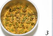将浸泡过的葡萄干滤去酒液,用纸或者布包裹沾干水份,取一半分量撒在模具底部;