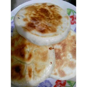 放入电饼档里边。这个是对折做的,像大饺子一样。