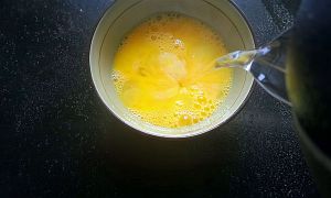 用刚煮开的沸水迅速冲入碗中搅拌均匀