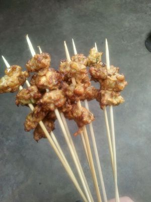 锅里放油,油5成热时,放丸子,炸至金黄即可,我的有一点老了