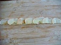 面团切成几块,擀成长条,把苹果片叠在上面,卷起来