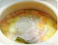 放入西瓜皮块,继续煲30分钟,放盐调味,撒少许葱花即可。