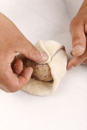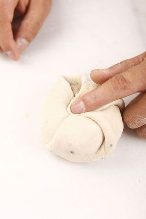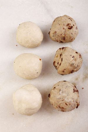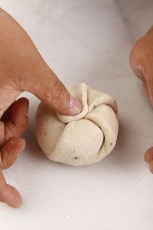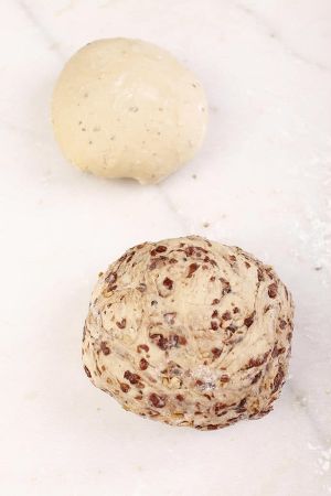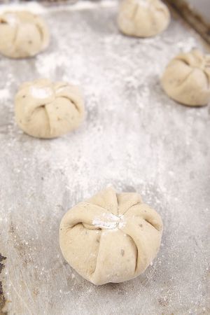 将放入坚果的面团分割成100克,基本面团分割成80克一个滚圆松弛20分钟。