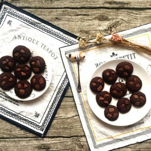 巧克力切成小块,将巧克力按压在曲奇上,每块曲奇上有三到四块即可。将烤盘放入预热过的烤箱中层,温度是上下火170度,我的烤箱小所以温度比较高,烤制十五分钟左右,出炉后彻底冷却等巧克力凝固后就可以食用啦。