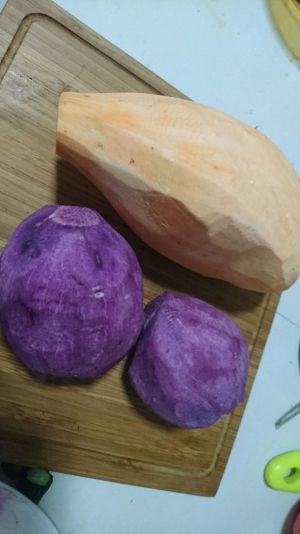 红薯也剁成泥,这时候可以加少许白糖进去,依照自己的口味来加