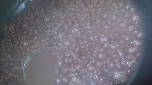 煮芋圆的时候,红豆也可以放进锅里煮二十分钟左右,煮至软烂,放一些糖,起锅后还可放一些糖拌匀