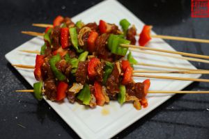 倒入cook100牛排调料,抓匀,腌制15分钟;