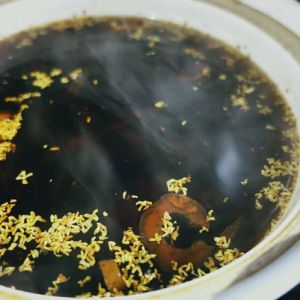 加入冰糖和桂花以后等冰糖溶化就可以关火了,这时候桂花的香气混合着淡淡的水蒸气扑鼻而来,让我想起了在婺源山里看到的袅袅炊烟,这就是最美丽的人间烟火气吧。