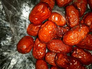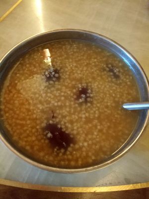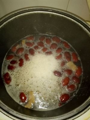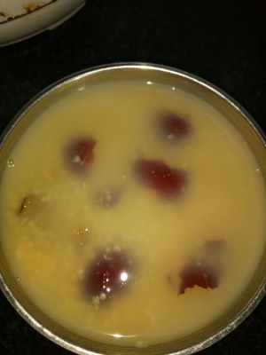 把泡好的小米,水,红枣加到电饭锅中,按煮粥键