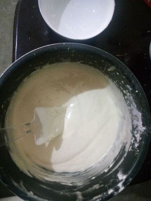 鸡蛋打发好后筛入面粉,用橡皮刮搅拌均匀