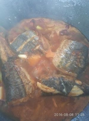 鱼清洗干净,切段,加上料酒,葱姜蒜沫腌制半小时入味。