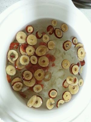 然后再加入枣片和枸杞,还有冰糖,盖上锅盖等待就可以了哦。