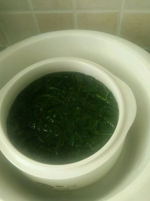 最后加上盖子,注意这一次内胆的盖子不盖哟,只盖外面的盖,这样苦菜就不会变黄黄的哦。好以后还会是绿的,这样看着更有食欲