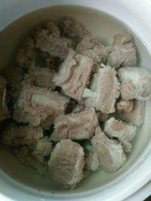 排骨焯水洗净放入电炖锅,加姜片,料酒,加水炖。时间设的3小时