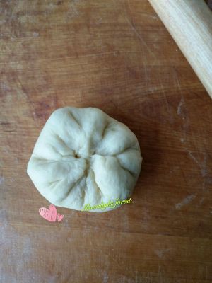包起椰蓉馅儿,收口收紧。8个依次包好收口朝下盖保鲜膜静置10分钟。