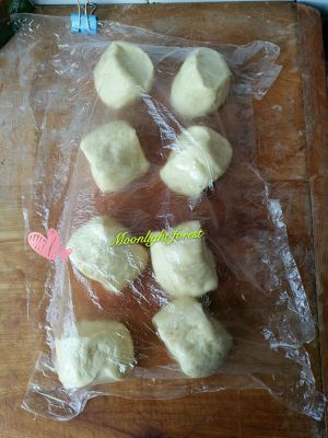 降发好的面团排气分成均等的8份,盖保鲜膜静置20分钟。