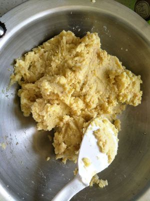 泡好的绿豆放入锅里蒸熟,压制成泥。在锅中加入黄油融化,放入绿豆泥翻炒。快炒好时加入蜂蜜,继续翻炒。