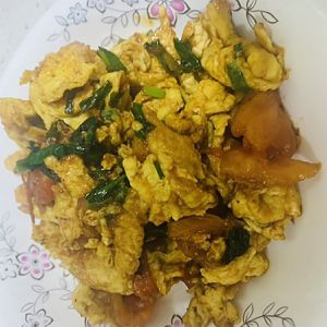 翻炒西红柿后倒入备用鸡蛋,一起翻炒