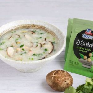 9、 最后加入香菜末,营养美味的香菇鸡肉粥完成。