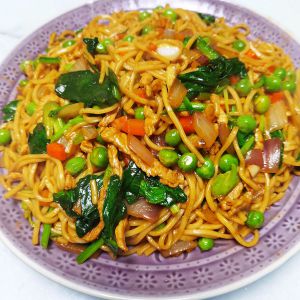 吃撑杂蔬肉丝炒面