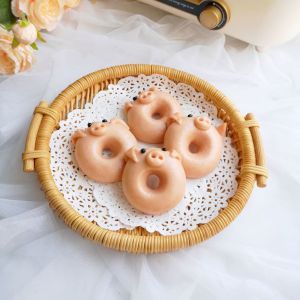 压出来的面团揉圆擀开,用小的裱花嘴压出小圆片做小猪的鼻子。