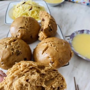1、红糖用开水化开晾凉,待水温30—40度左右放入酵母粉自然化开后加入500克普通面粉,用筷子搅成絮状,加入30食用油,揉成光滑的面团,盖上保鲜膜发至三倍大.