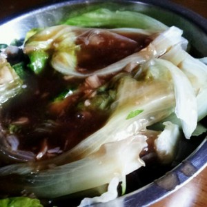 用油炒香蒜蓉,倒入蚝油,水,盐