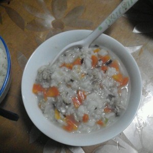 放盐剁好的葱姜,油,米饭!然后煮熟就可以吃了!很简单吧!