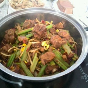 等到锅内的东西吃完,只要是芹菜,豆芽吃完,排骨可以再煮没问题,开火加汤去煮你想煮的菜品