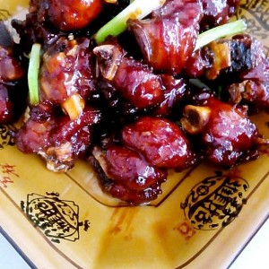 然后锅内入油,放糖用小火炒至糖化起泡,然后倒入排骨翻炒会儿,加入水,红醋。等待收汁。