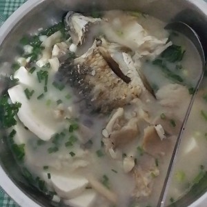 PS:用老姜涂抹锅底是防止煎鱼时鱼粘锅,用猪油是因为可以更好的出鱼的鲜味,鱼汤更鲜美,更白。