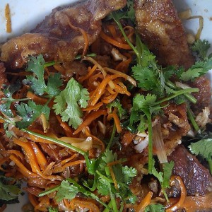 料汁自己调,糖2勺,醋2勺,盐少许,料酒1勺,生抽少许,我自己放了一点耗油。