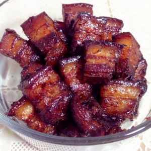 大火收汁,红烧肉最好啦!如果发现肥肉还是有些大说明炖的不够,此时可以再加沸水继续炖。直到肉变成一厘米见方的肉块即可出锅。